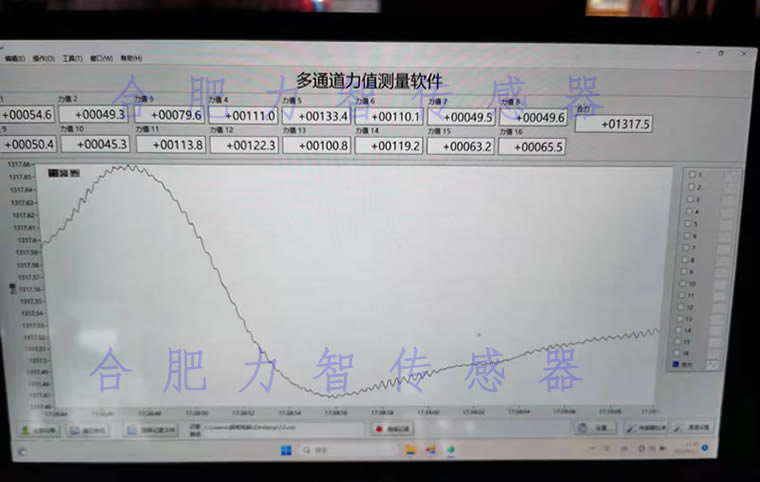 2:采用傳感器類型,本次采用合肥力智傳感器系統有限有限公司大噸位輪輻式稱重傳感器,單只傳感器量程0-200T, 16只輪輻LZ-HLA-200T傳感器,合力最大可測范圍可達3200T的稱重范圍, 配置16通道合力高速稱重采集模塊及電腦采集軟件, 通過稱重上位機采集軟件,可分單路觀測每一路每一只稱重的噸位,通過自帶的后臺運算,再以多路合力值的方式呈現整套稱重總負載重量,并伴有力值變化的曲線圖及可選擇的數據存儲功能,便于查閱數據,科學的研判力值,以達到工程目的。